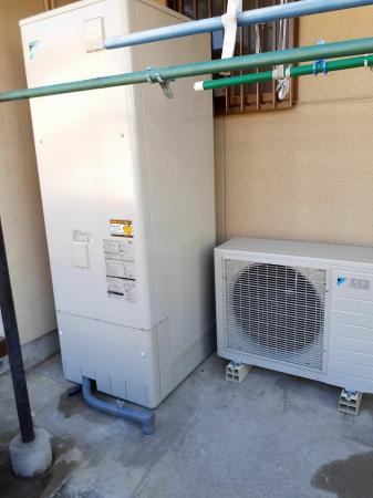 温水器の修理で訪問。使用年数も長く修理不可だったので、エコキュートを提案させていただきお取替させていただきました。