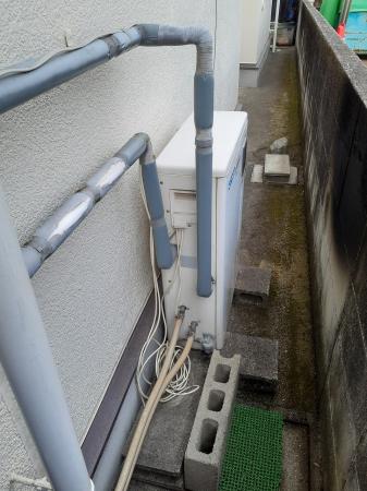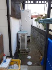 既存給湯器を撤去して配管工事などを行い同タイプのエコキュートを設置しました。