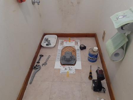 TOTOピュアレストQR:リモデルタイプへの取替工事です。 |
