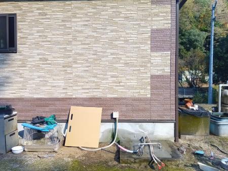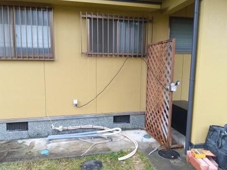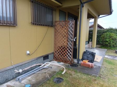 エコキュートのタンクとヒートポンプを繫ぐ配管からの水漏れがあり、年数もたっていたことから新しく取替工事させて頂きました。