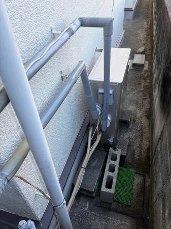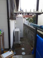 既存給湯器を撤去して配管工事などを行い同タイプのエコキュートを設置しました。