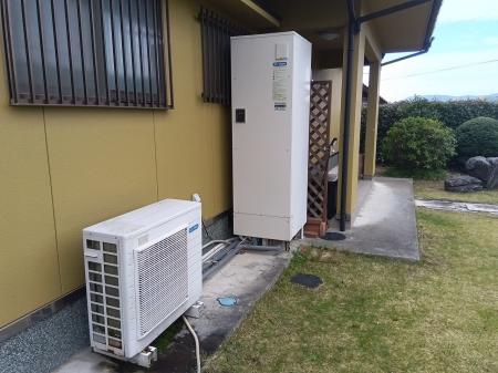 温水器の修理で訪問。使用年数も長く修理不可だったので、エコキュートを提案させていただきお取替させていただきました。