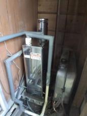 既存給湯器を撤去して配管工事、エントツ調整を行いオイルタンクと同タイプのボイラーを設置しました。 |